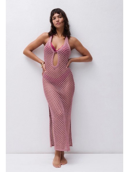 Chantelle pulp metallic , copricostume in crochet in rosa metallic
