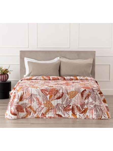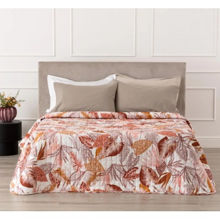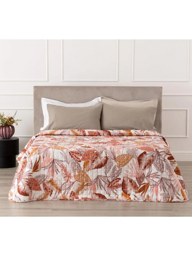 Il quilt Arjola in percalle 100% cotone interpreta il tema tropicale con equilibrio e leggerezza, dando vita a un disegno fitto e dinamico in stampa digitale, popolato da foglie di palma, banano e monstera. Le sovrapposizioni botaniche, declinate in tonalità sabbia, terra e rame, creano un pattern dal tratto raffinato e quasi illustrativo, capace di portare carattere alla camera senza risultare eccessivo. Il retro in percalle tinta unita completa il look con discrezione, mentre la mano fresca e compatta del tessuto assicura comfort quotidiano.